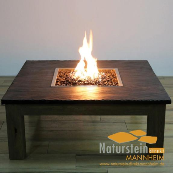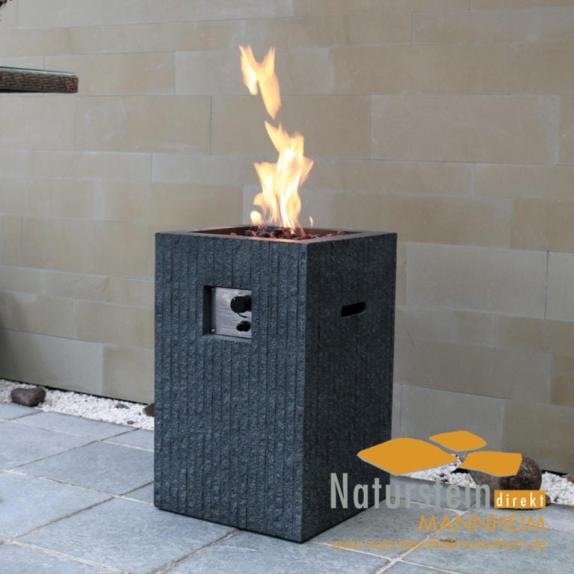 Basalt-Optik, Brauntöne, Faserbeton, inkl. Druckminderer, Anschlußleitung, Lavasteine schwarz, Anschluss an innenliegende Gasquelle.