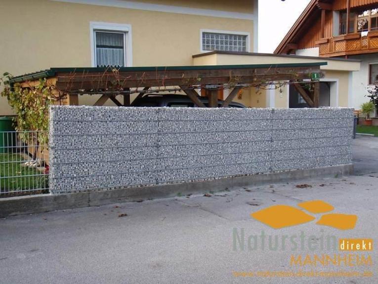 Lieferumfang Grundelement mit Fussplatten (Höhe 64 cm): 2 Zaunsäulen (10 cm breit) mit Anfangs- / Endfußplatte, 2 Gittermatten (Maschenweite 25 / 200 mm) Länge 253 cm; Element feuerverzinkt nach DIN 50976 (EN ISO 1461); 8 Stück Universalklemmen V2A; 7 Stück Abstandhalter V2A; Stahldrahtstärke waagrecht Doppelstab je 6 mm; Mindestfestigkeit 500N / mm; senkrecht Einfachstab 5 mm; Mindestfestigkeit 500N / mm; Maschenweite 25 x 200 mm. Systemzugehörige Abstandhalter aus Edelstahl; Empfohlen wird das Einbringen von Zierkiesen der Sorte 32 / 56 (DIN EN 12620) oder 30/45; (Füllmenge ca. 0,15 qm³)