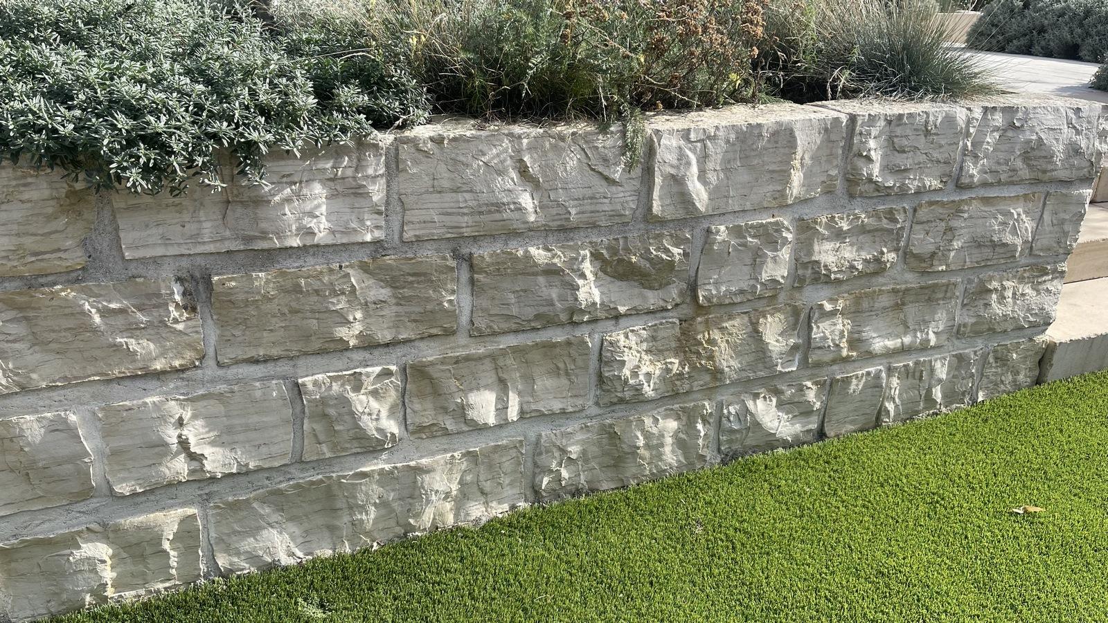 Mauersteine in mediterranem Aussehen, schöne Maserung, gespaltene Steine zur Errichtung von Mauern, Beeteinfassungen oder Verkleidung von Bauwerken.