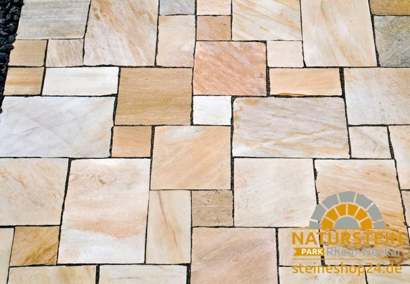 Terrassenplatten aus Naturstein in unterschiedlichen Größen